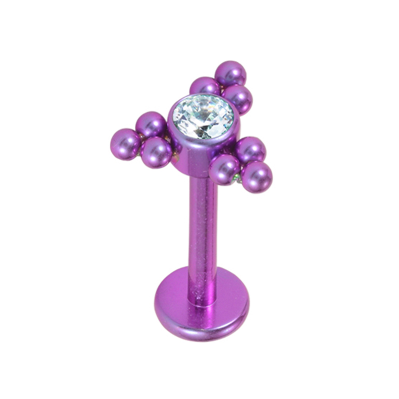 Internally Anodized Threaded 3 Tri-bead Clusters with Bezel CZ Gem Top