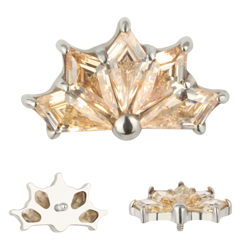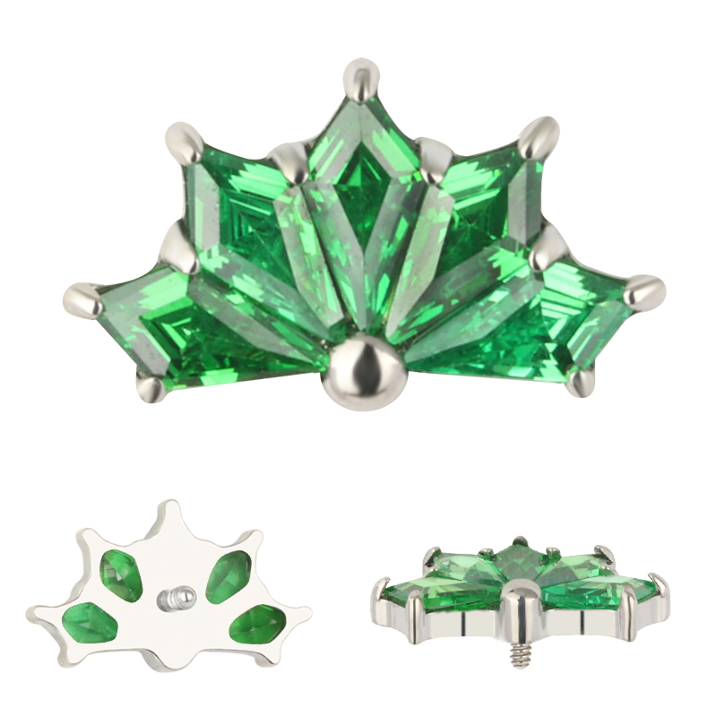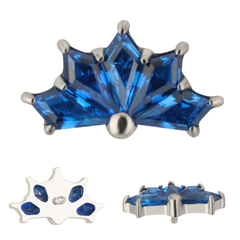 Titanium CNC 5 Kite Shape Zircon Prong Set Internally Threaded Top