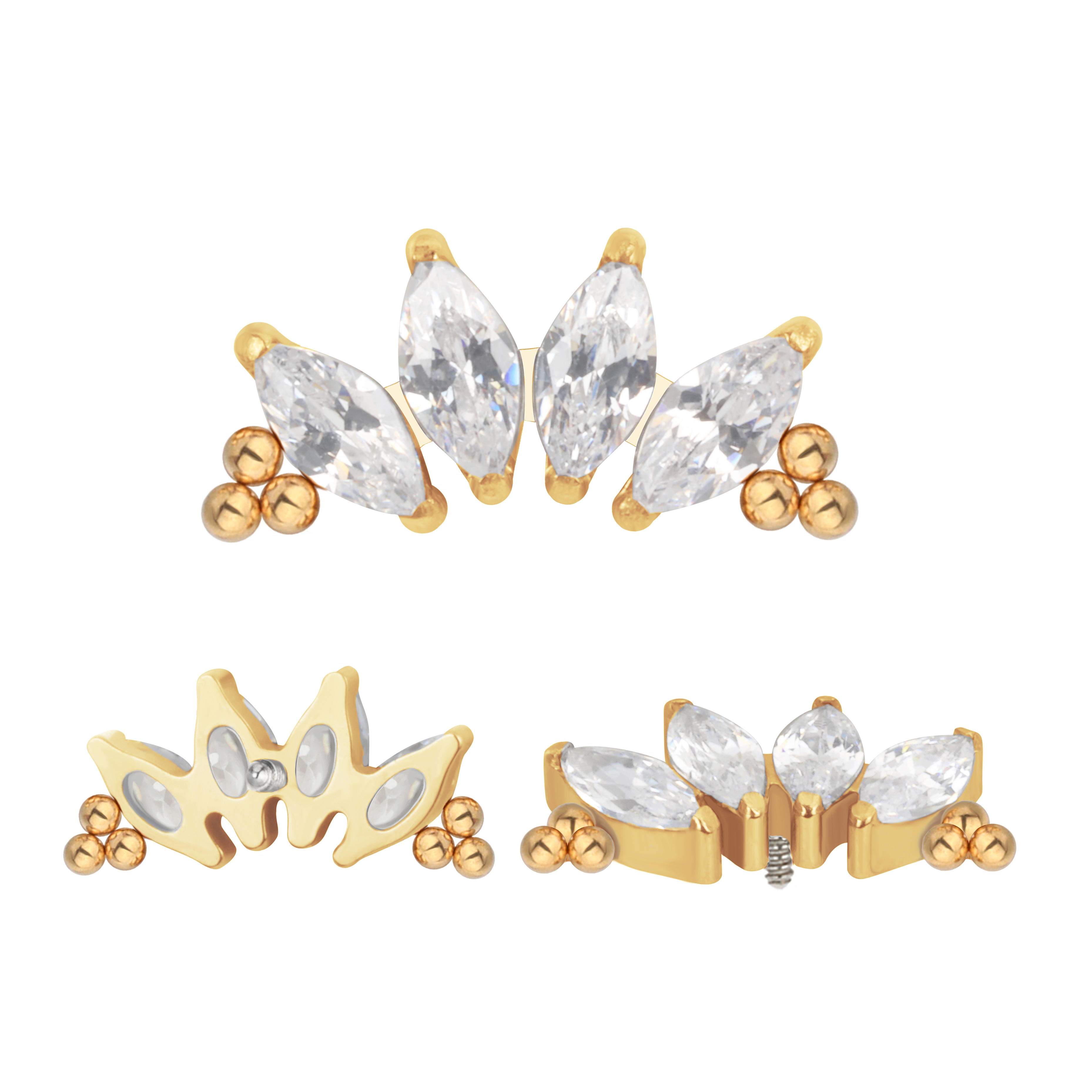 Titanium 4 Prong Set Marquise CZ With Tri-bead Cluster Internally Threaded Top