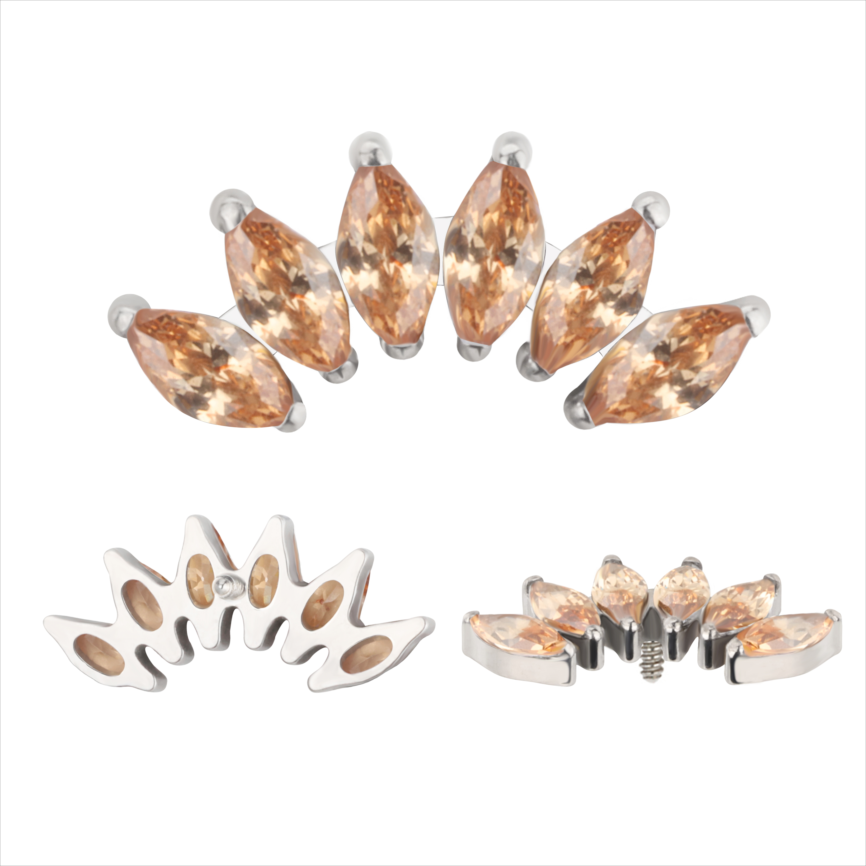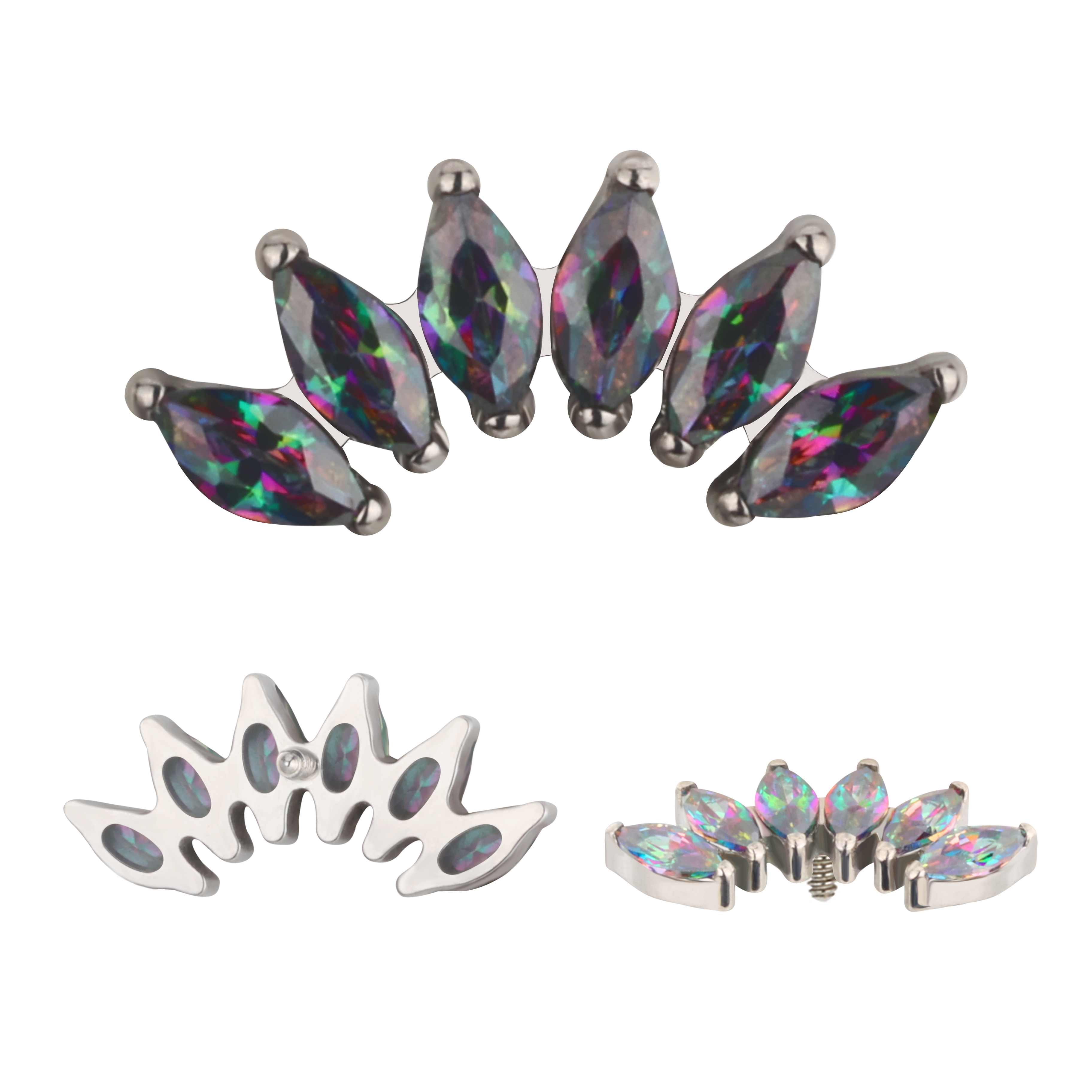 Titanium 6 Prong Set Marquise CZ Internally Threaded Top