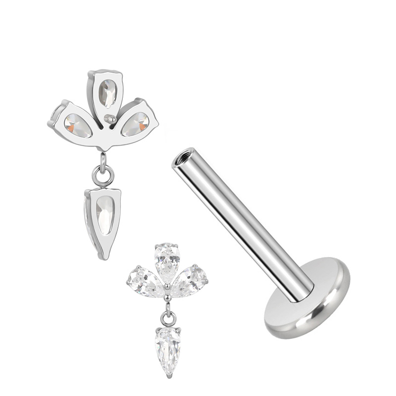 Titanium 3 Pear CZ With Pear CZ Dangle Internally Threaded Top