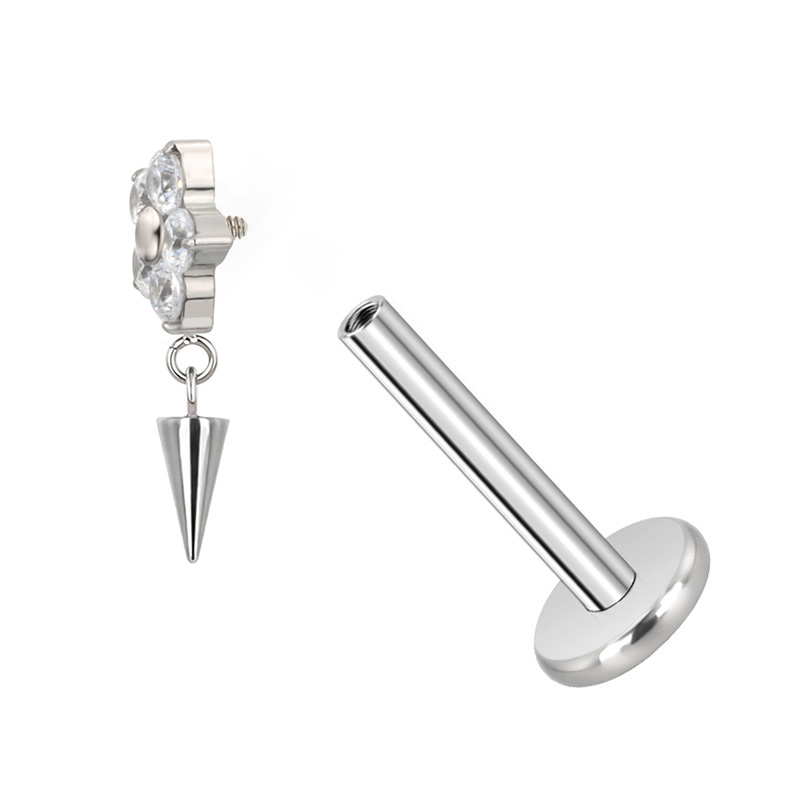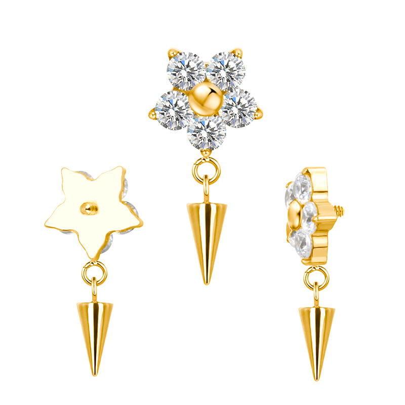 Titanium CZ Flower With Spike Dangle Internally Threaded Top