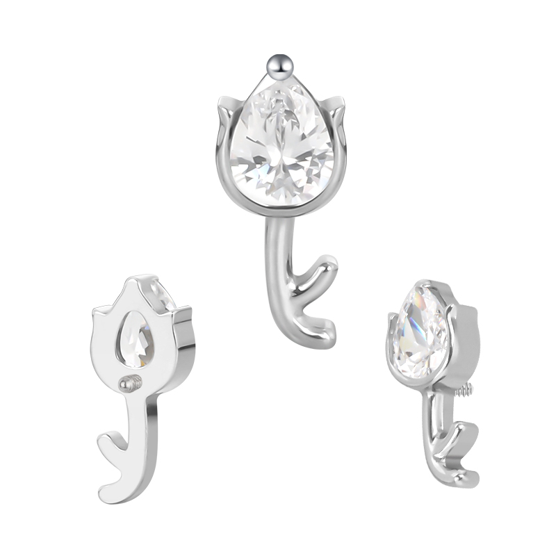 Titanium Rose With Pear CZ Center Internally Threaded Top
