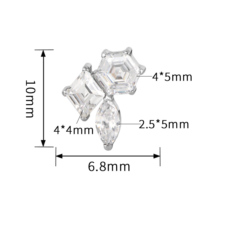 Titanium Hexagonal+Square+Round CZ Internally Threaded Top