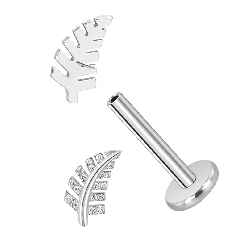 Titanium Push In CZ Leaf Threadless Top