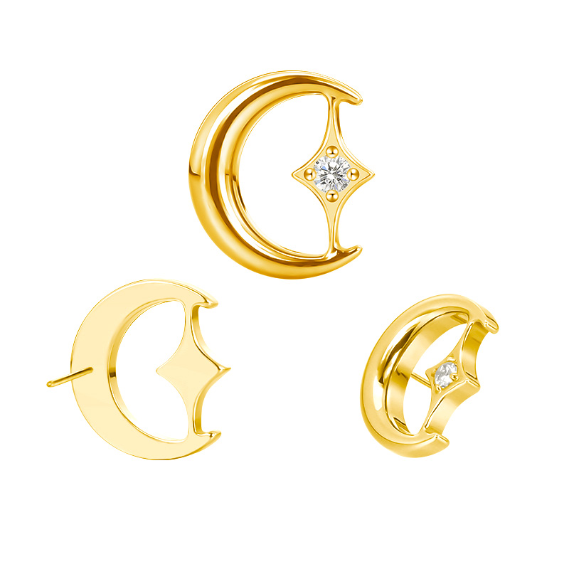 Titanium Push In Moon With CZ Center Threadless Top