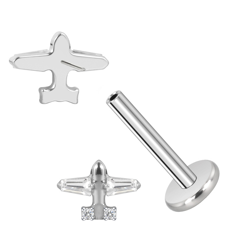 Titanium Push In CZ Airplane Threadless Top