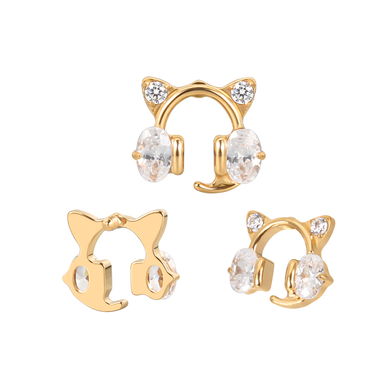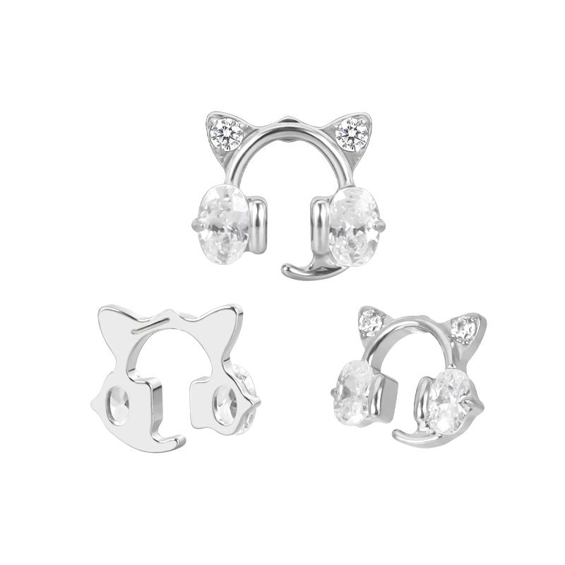 Titanium CZ Cat Ear Headphones Internally Threaded Top