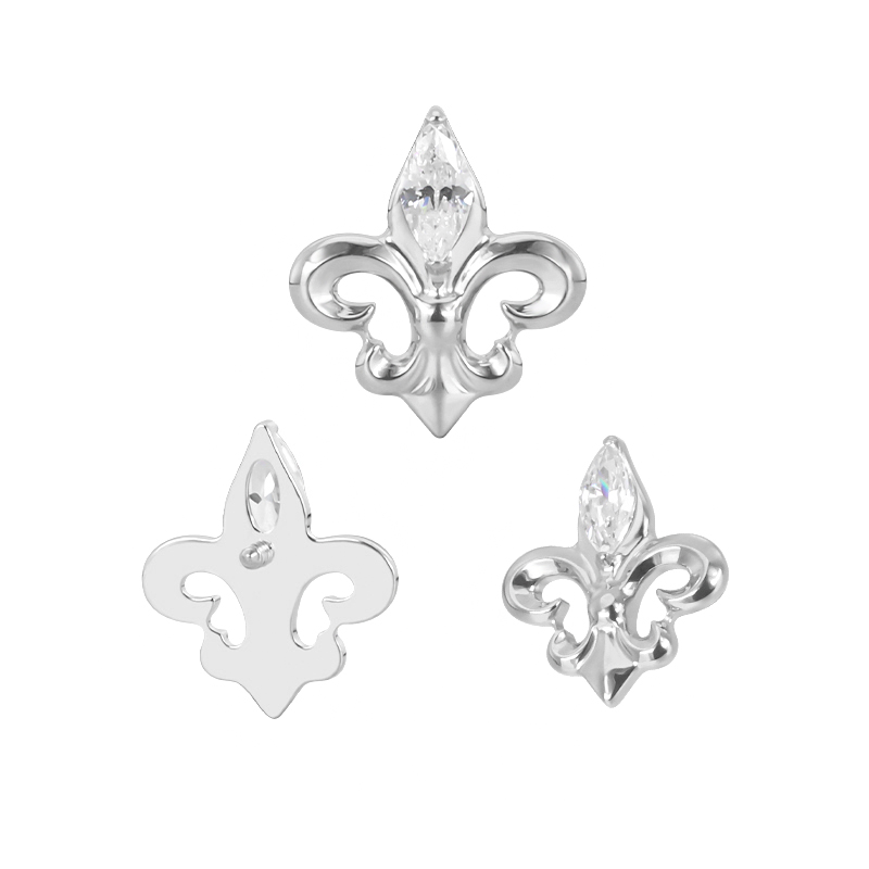 Titanium Fleur De Lis With Marquise CZ Center Internally Threaded Top
