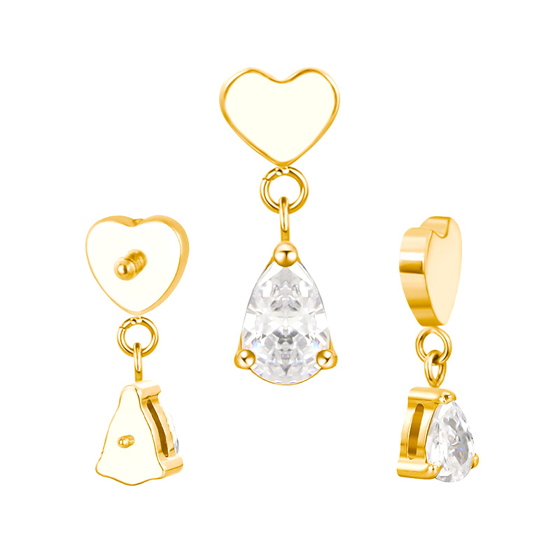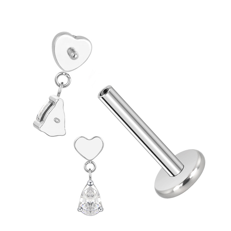 Titanium Heart With Pear CZ Dangle Internally Threaded Top