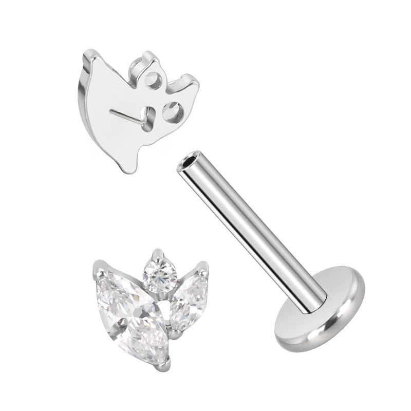 Titanium Push In 2 Marquise CZ and 1 CZ Threadless Top