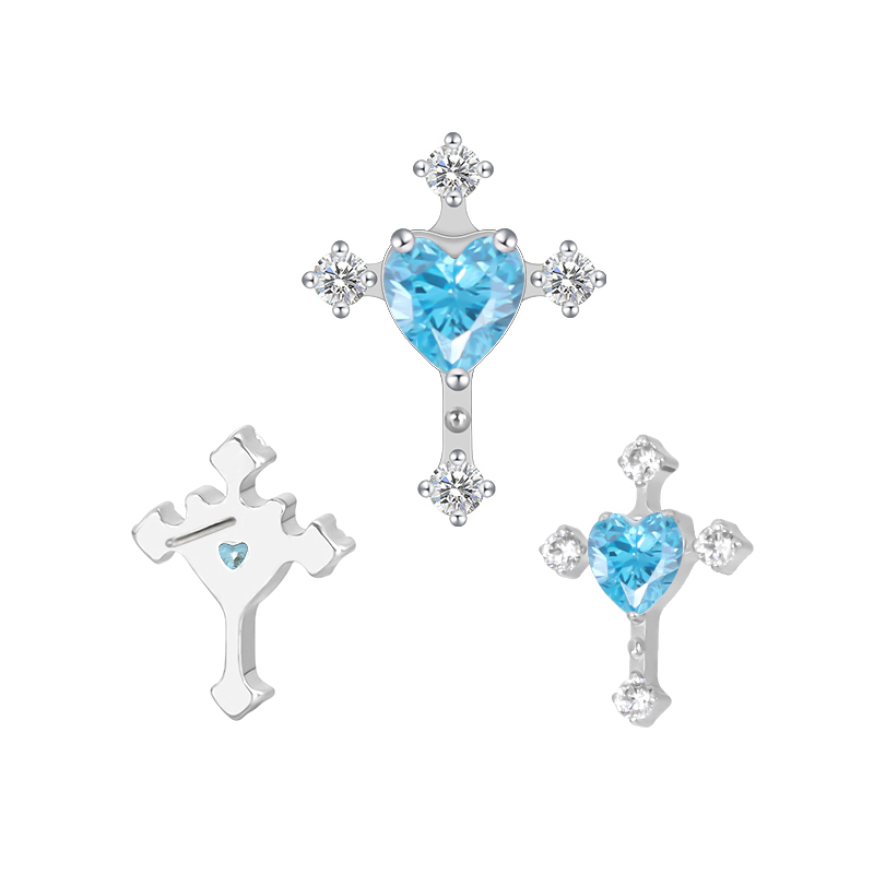 Titanium Push In Cross With Heart CZ Center Threadless Top