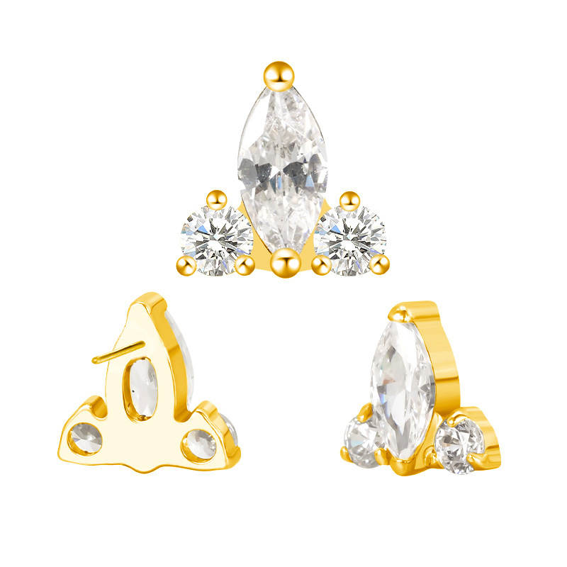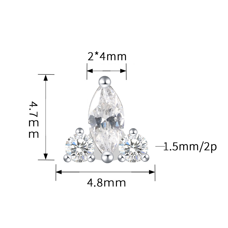 Titanium Push In Marquise CZ and 2 CZ Triangle Threadless Top
