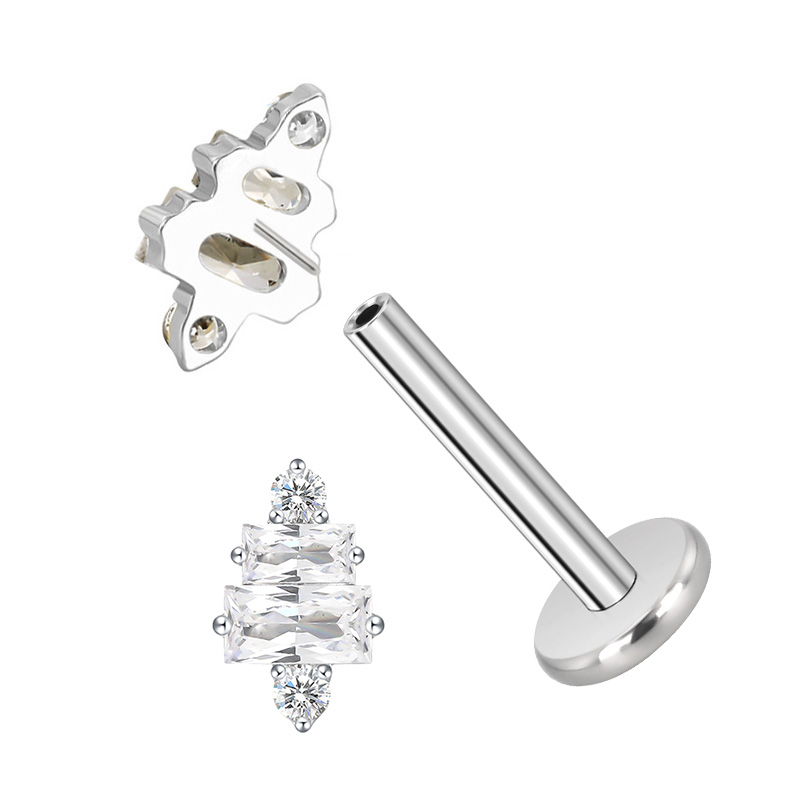 Titanium Push In 2 Rectangle CZ and 2 CZ Threadless Top