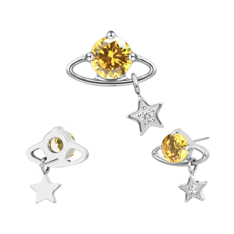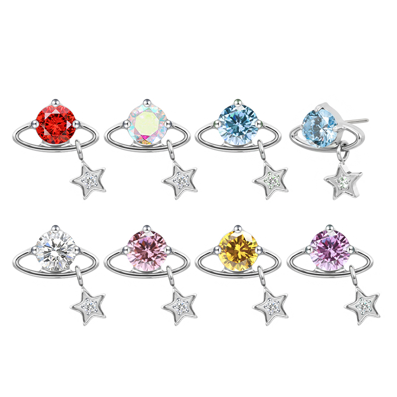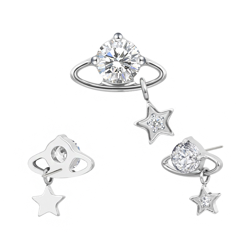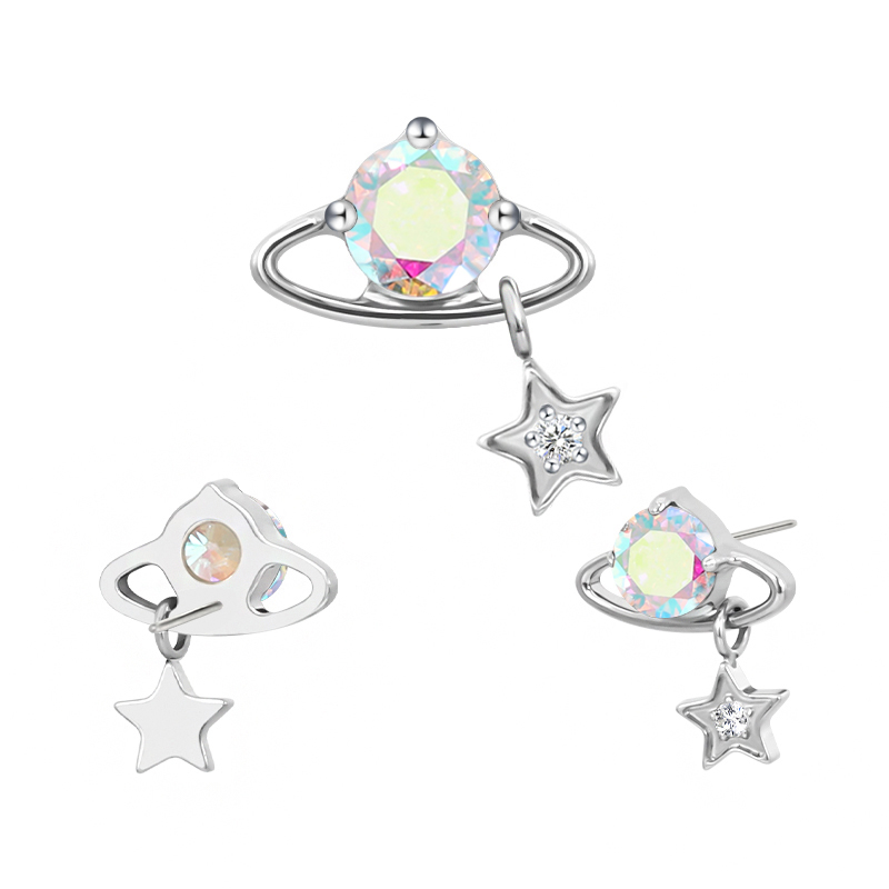 Titanium Push In CZ Planet With Star Dangle Threadless Top