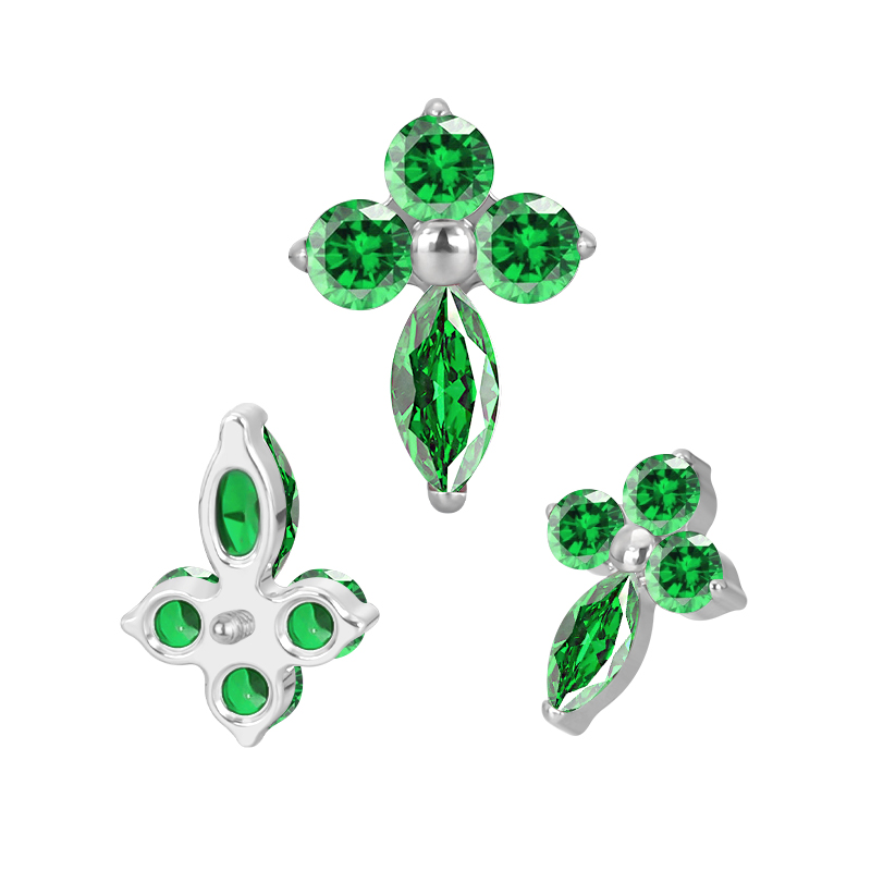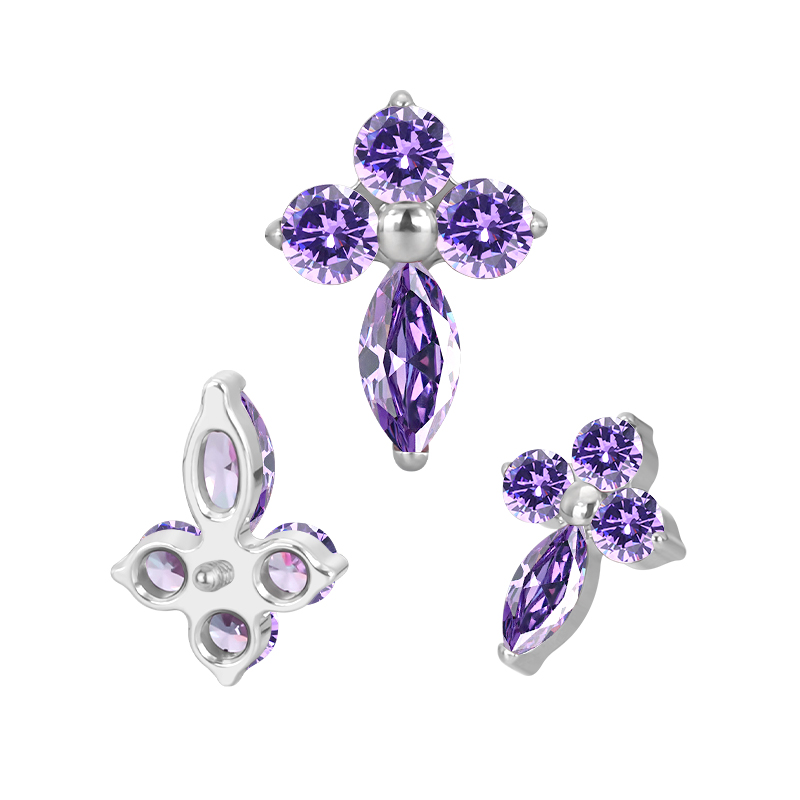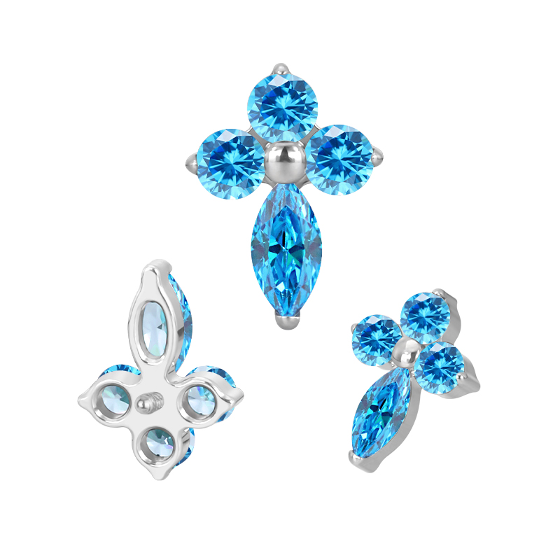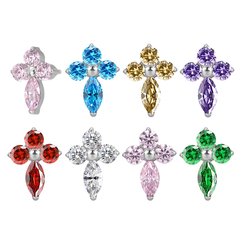 Titanium 3 CZ and Marquise CZ Cross Internally Threaded Top