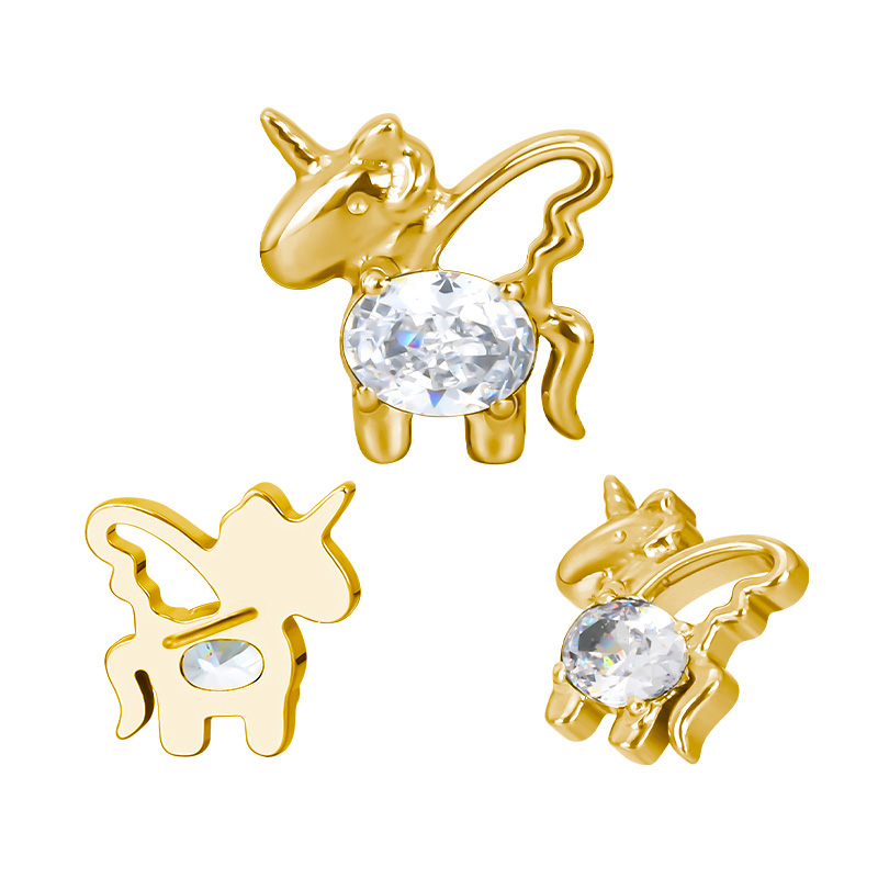 Titanium Push In Unicorn With CZ Center Threadless Top