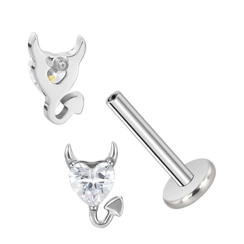 Titanium Love Devil With Heart CZ Center Internally Threaded Top
