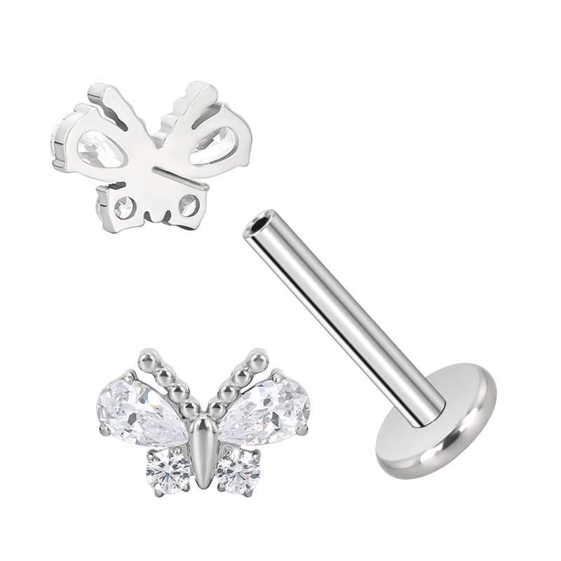 Titanium Push In CZ Butterfly Threadless Top