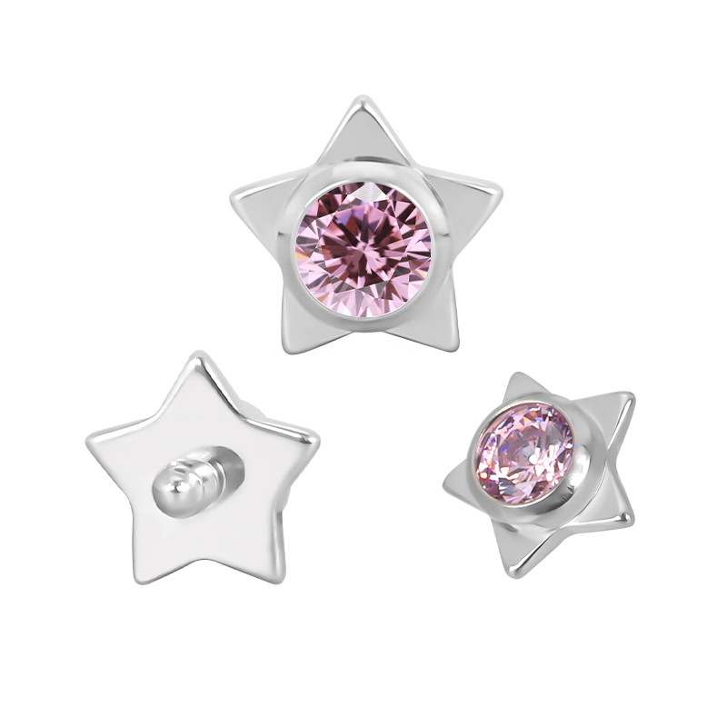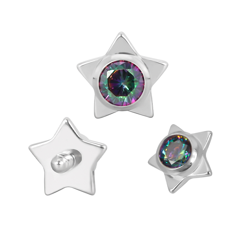 Titanium Star WIth CZ Center Internally Threaded Top