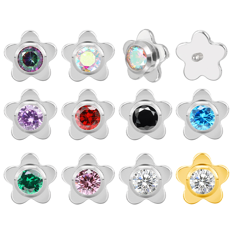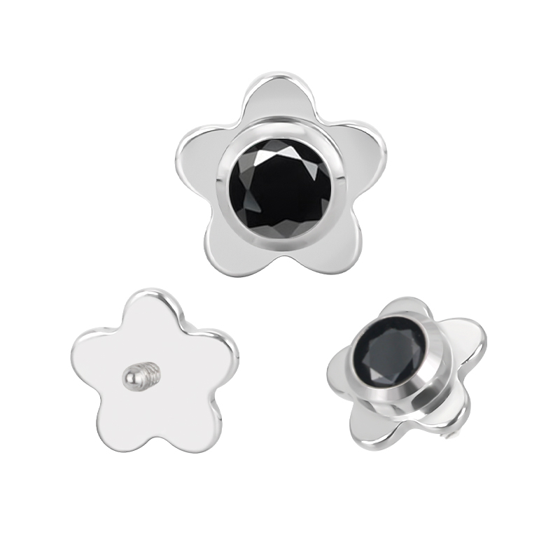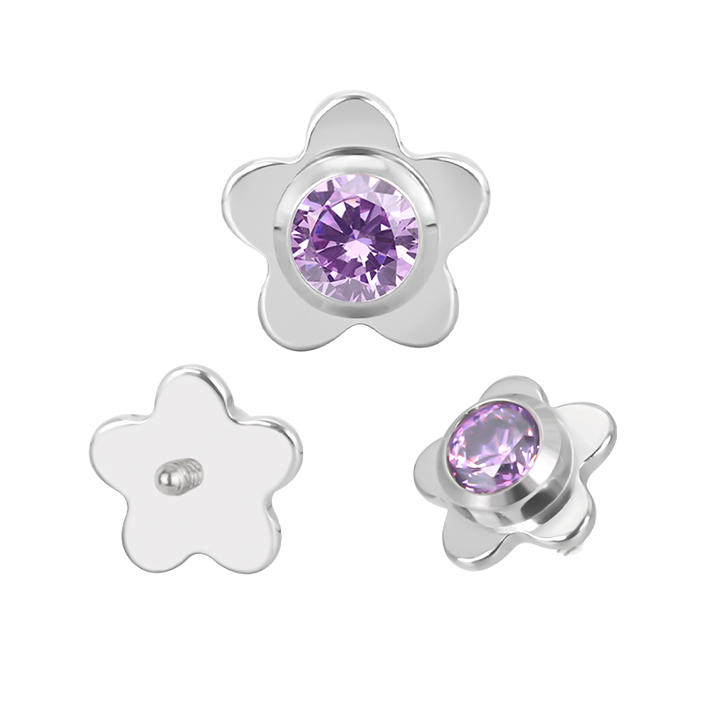 Titanium Flower With CZ Center Internally Threaded Top
