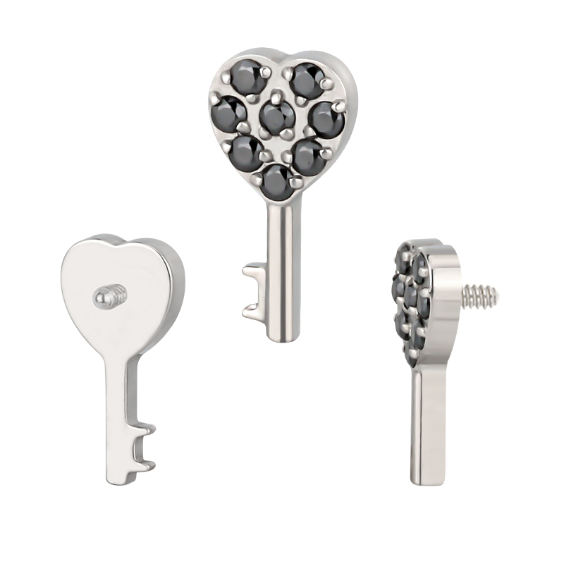 Titanium CZ Paved CNC Heart Key Internally Threaded Top