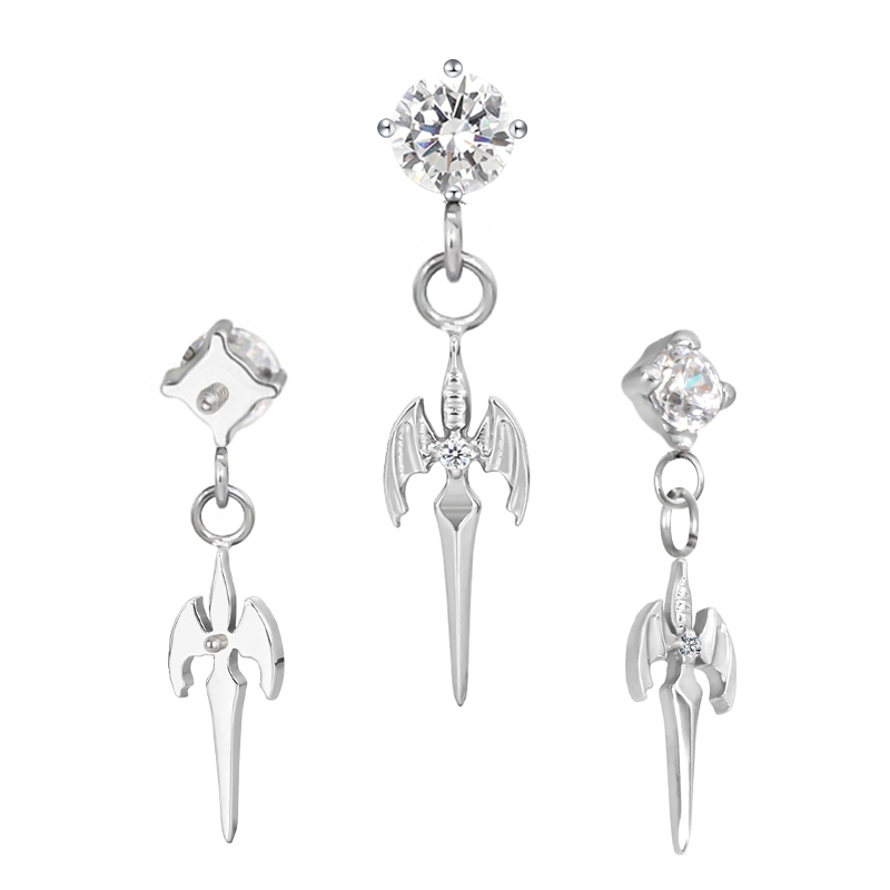 Titanium Sword With Wings Dangle Internally Threaded Top