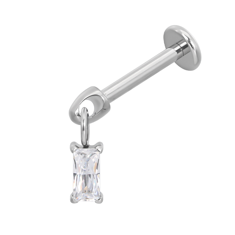 Titanium Internally Threaded Flat Back Labret With Baguette CZ Dangle