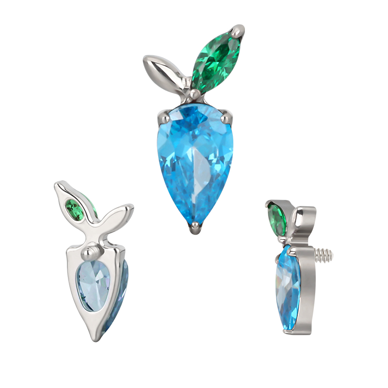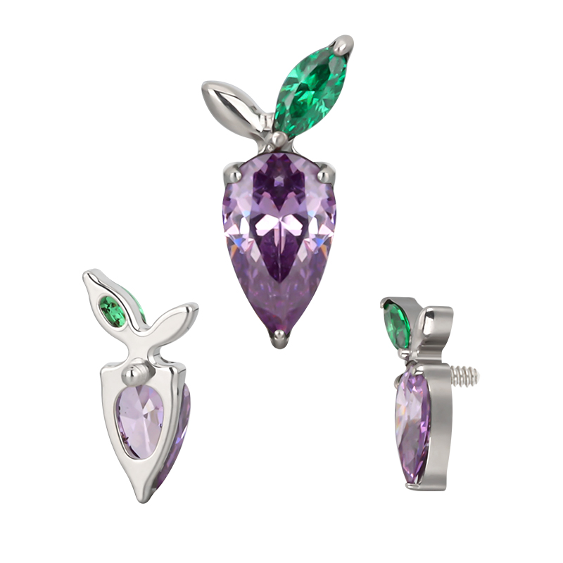 Titanium CNC Set Carrot With Pear CZ Center Interanlly Threaded Top