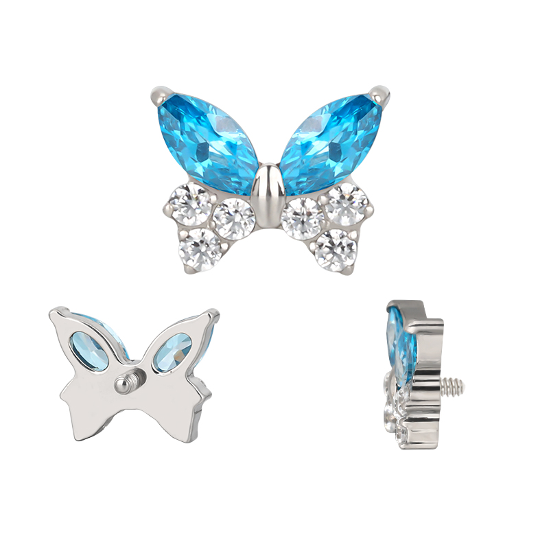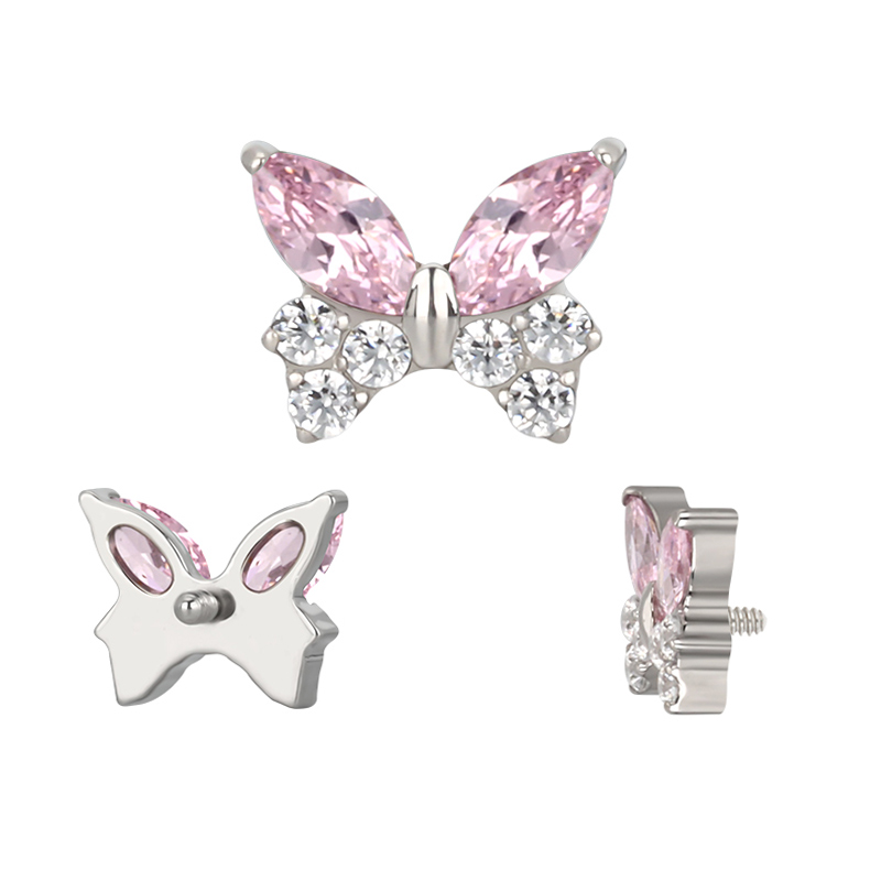 Titanium CNC Set CZ Butterfly Internally Threaded Top