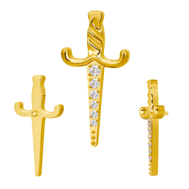 Titanium CZ Paved Dagger Internally Threaded Top