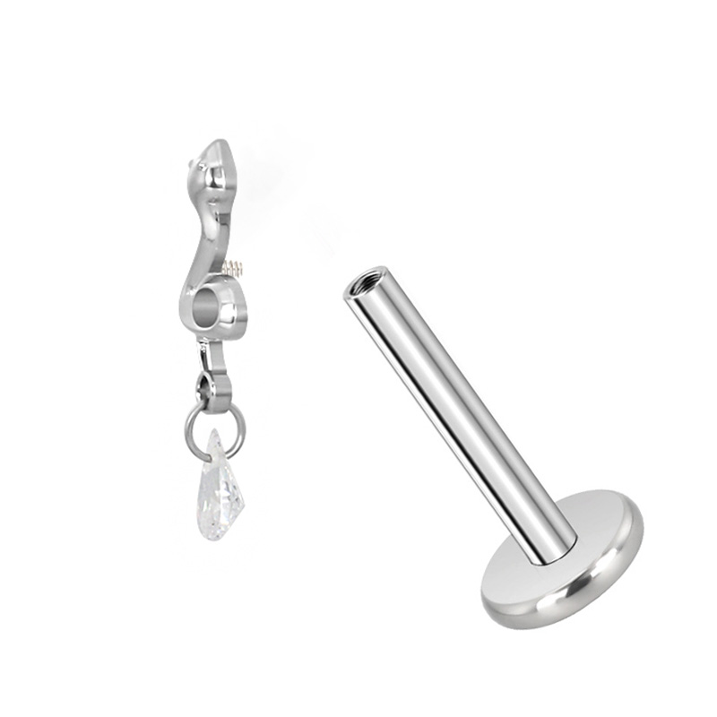 Titanium Snake With Pear CZ Dangle Interanlly Threaded Top