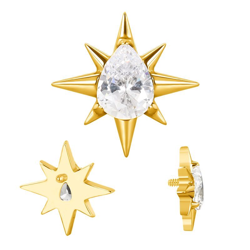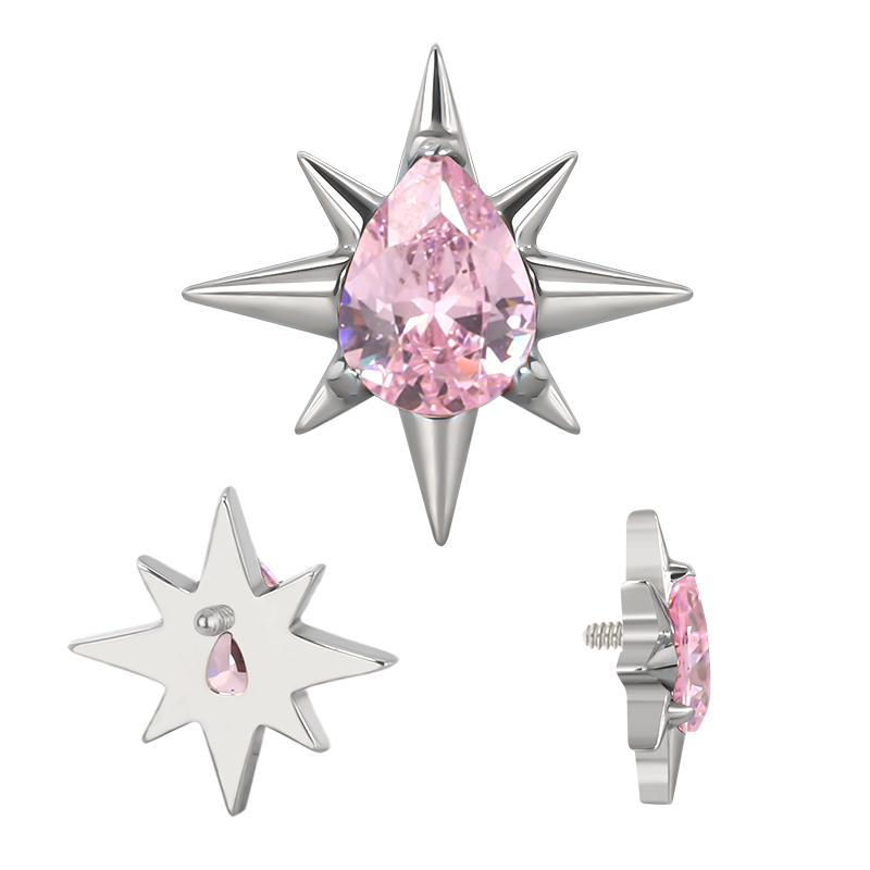 Titanium CZ Star With Pear CZ Center Interanlly Threaded Top