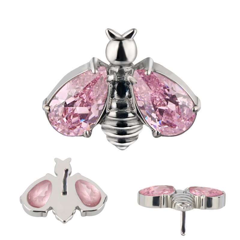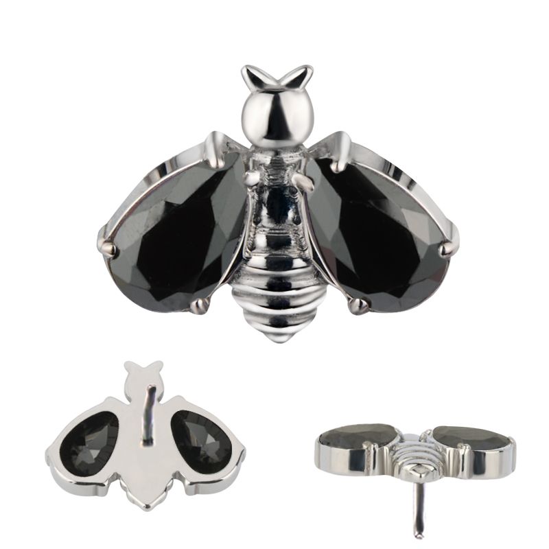 Titanium Push In Bee With Bezel Set CZ WIngs Top