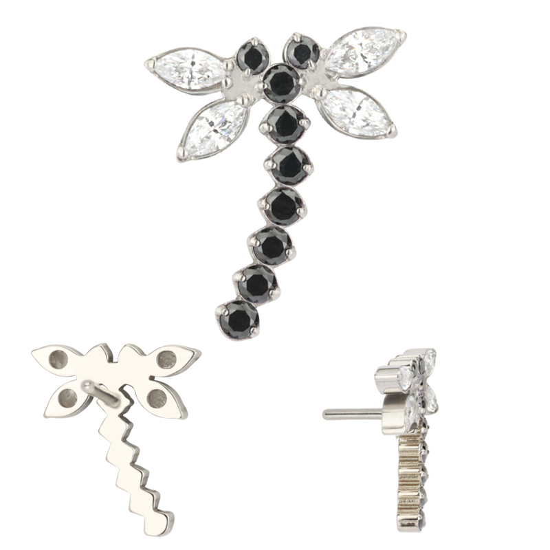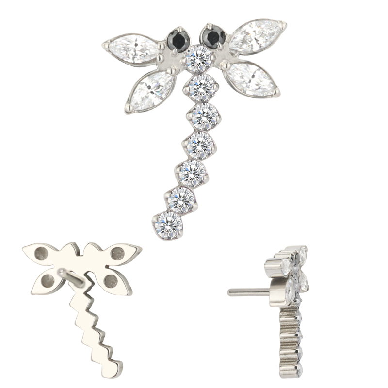 Titanium Push In CZ Pave Dragonfly Threadless Top