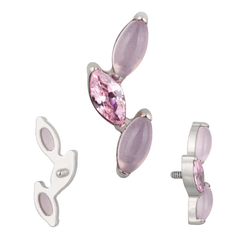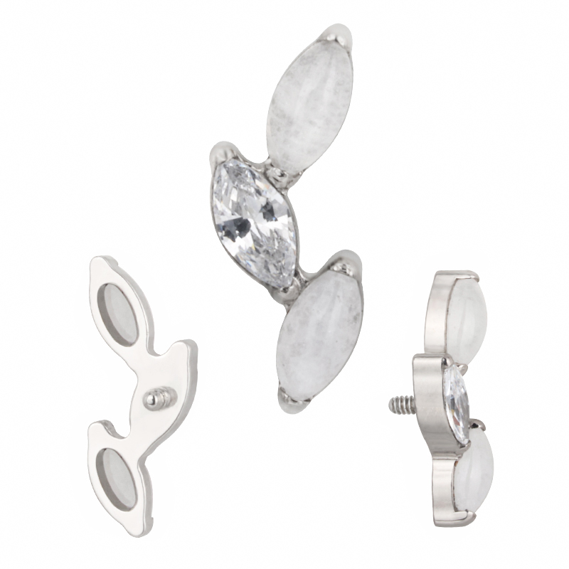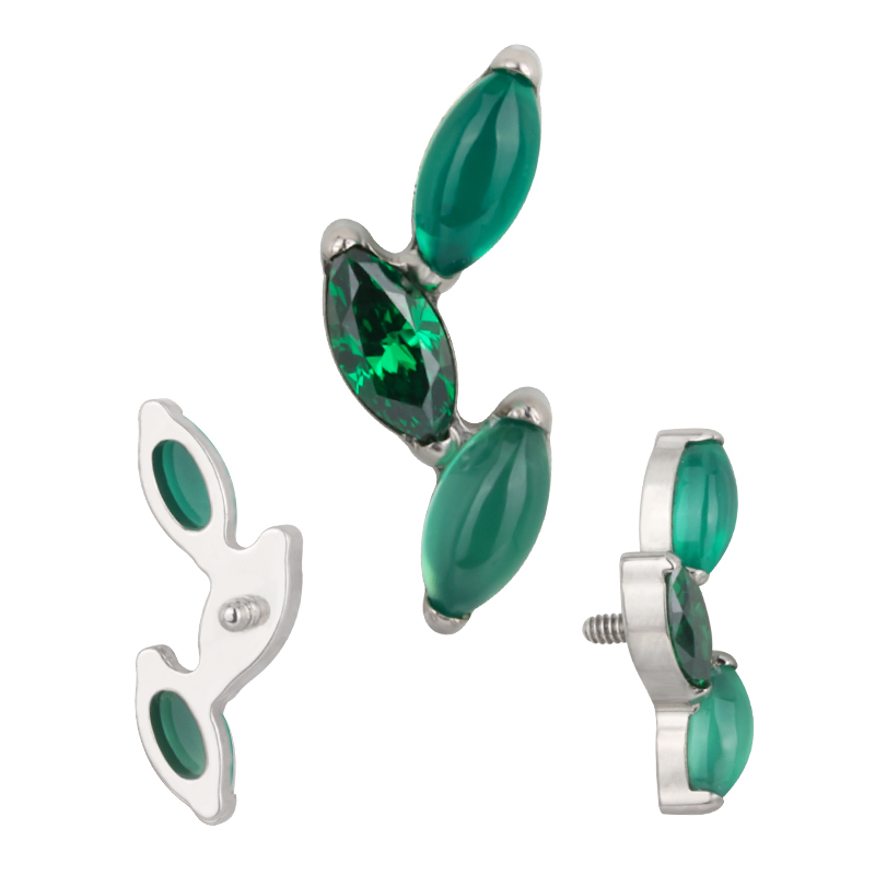 Titanium 3 Marquise Natural Stone Leaf Shape Internally Threaded Top