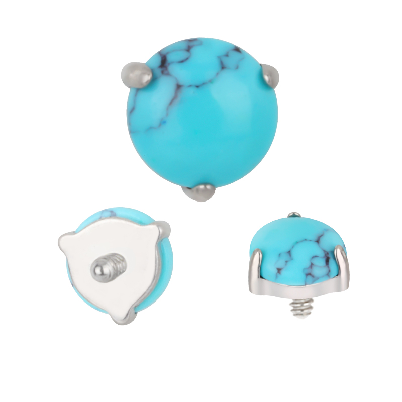 Titanium Prong Set Semi Precious Round Stones Internally Threaded Top