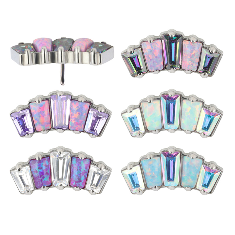 Titanium Push In 5 Opal Stone Rectangle Threadless Top
