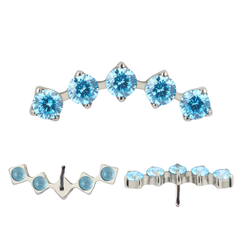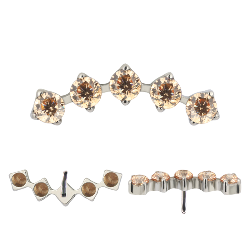 Titanium Push In 5 Prong Set CZ Stone Threadless Top