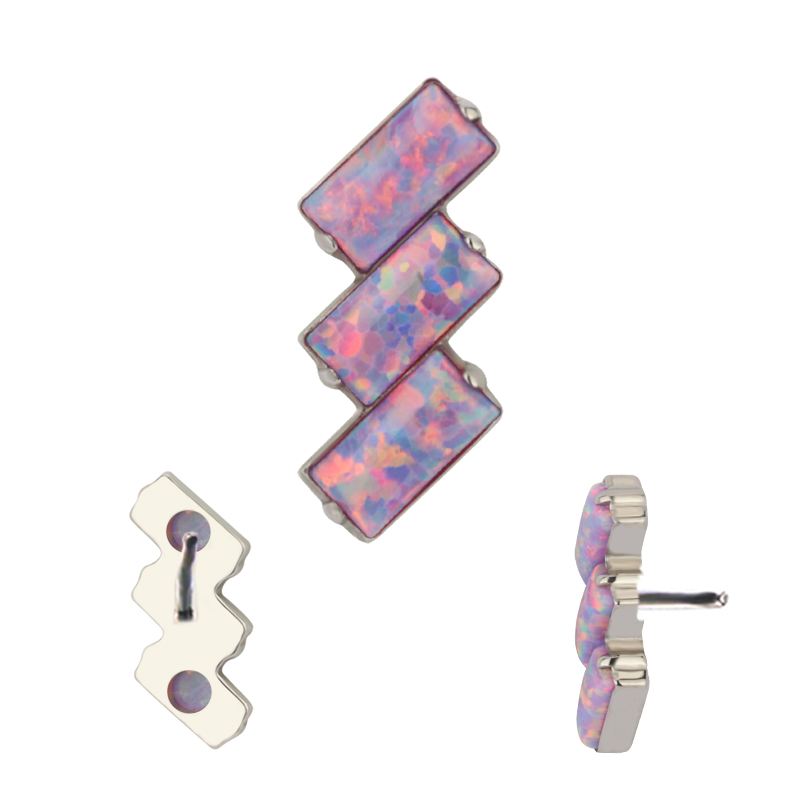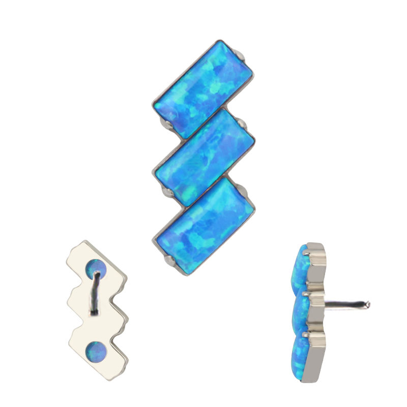 Titanium Push In 3 Bezel Set Rectangles Opal Stone Threadless Top