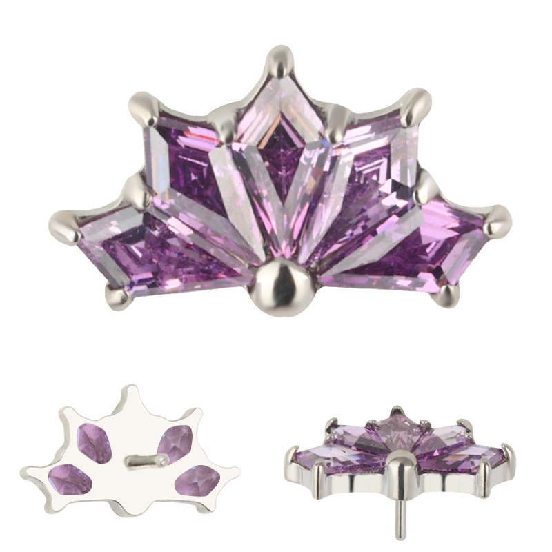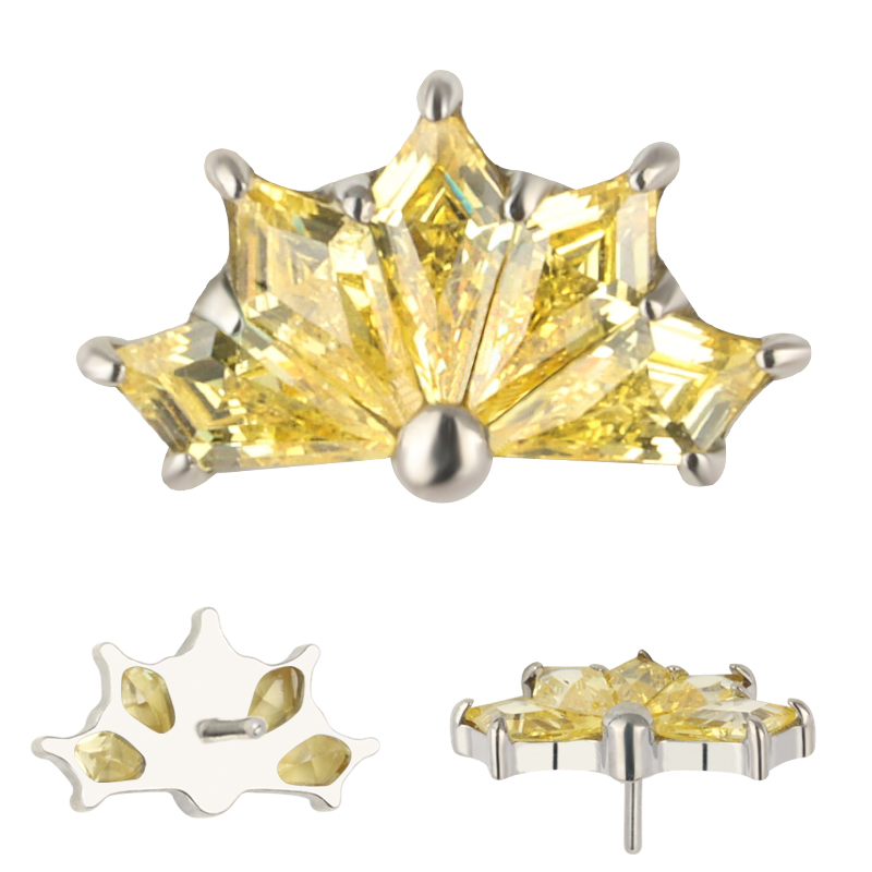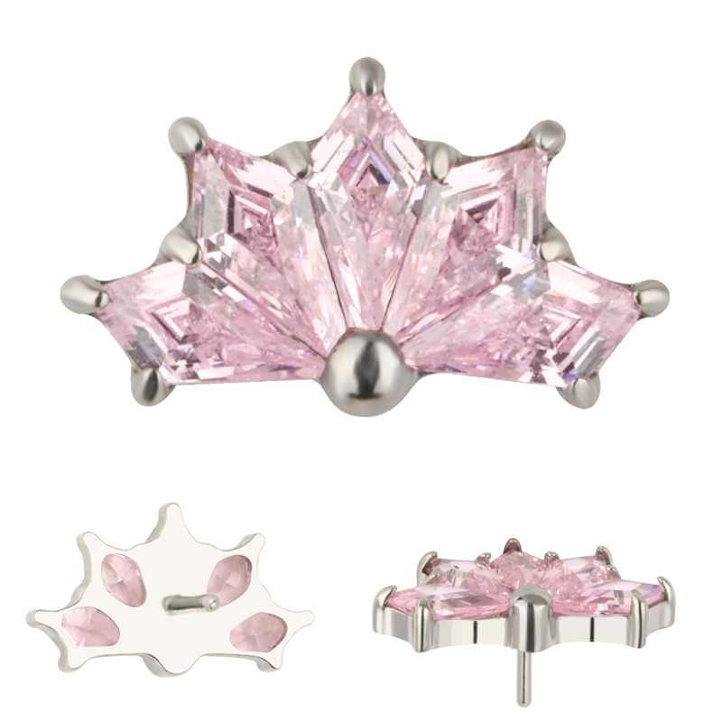 Titanium Push In CNC 5 Kite Shape Zircon Prong Set Threadless Top