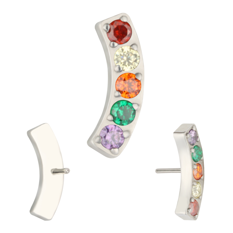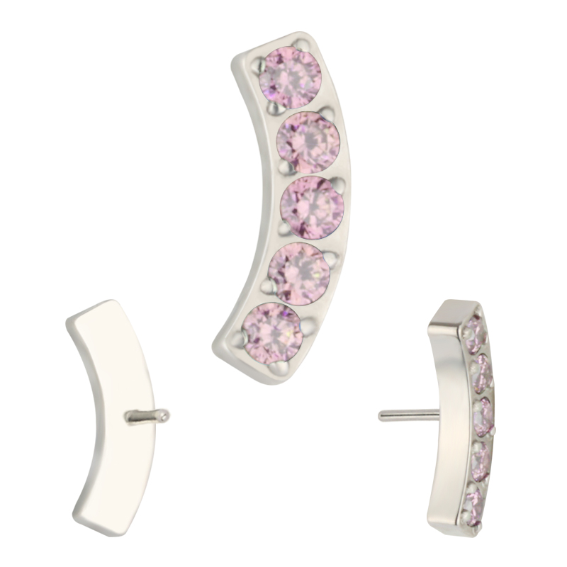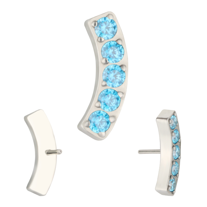 Titanium Push In 5 CNC Set CZ Lined Curved Bar Threadless Top