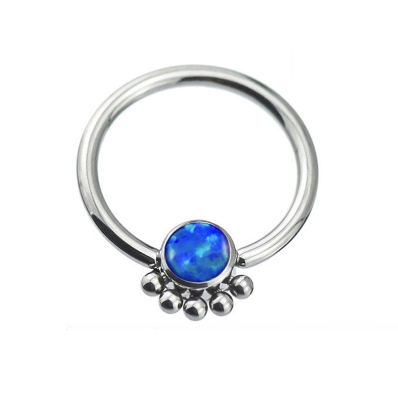 Half Beaded Edge Design with Bezel Opal Captive Bead Rings