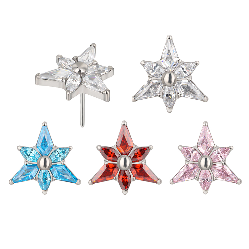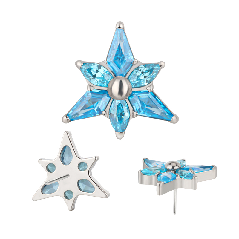 Titanium Push In CNC Set 3 Marquise CZ and 3 Kite CZ Threadless Top