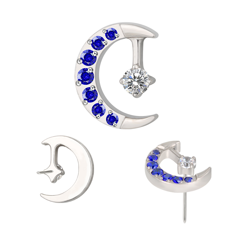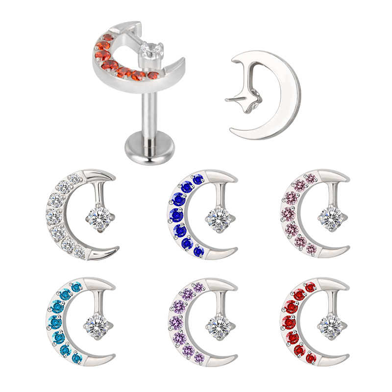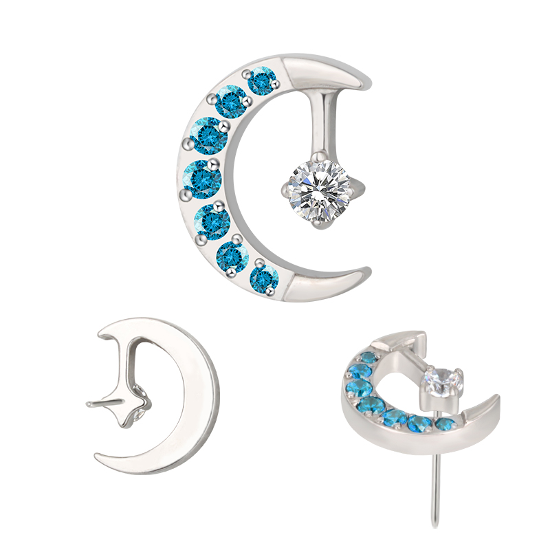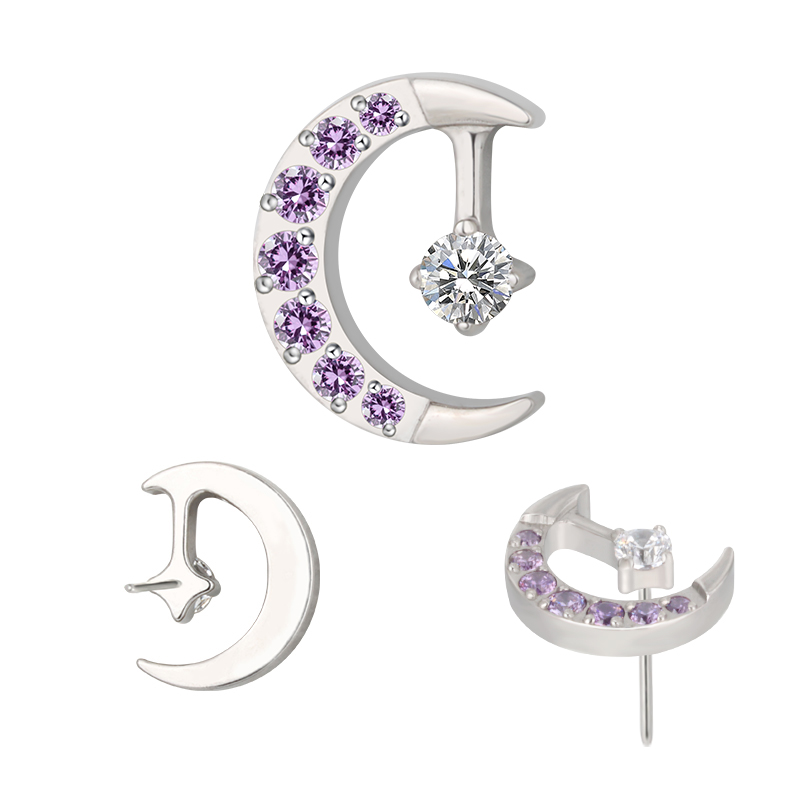 Titanium Push In CNC Set Moon With CZ Center Threadless Top