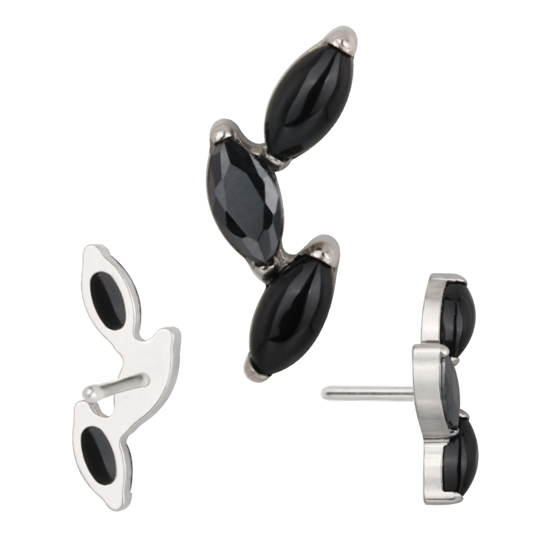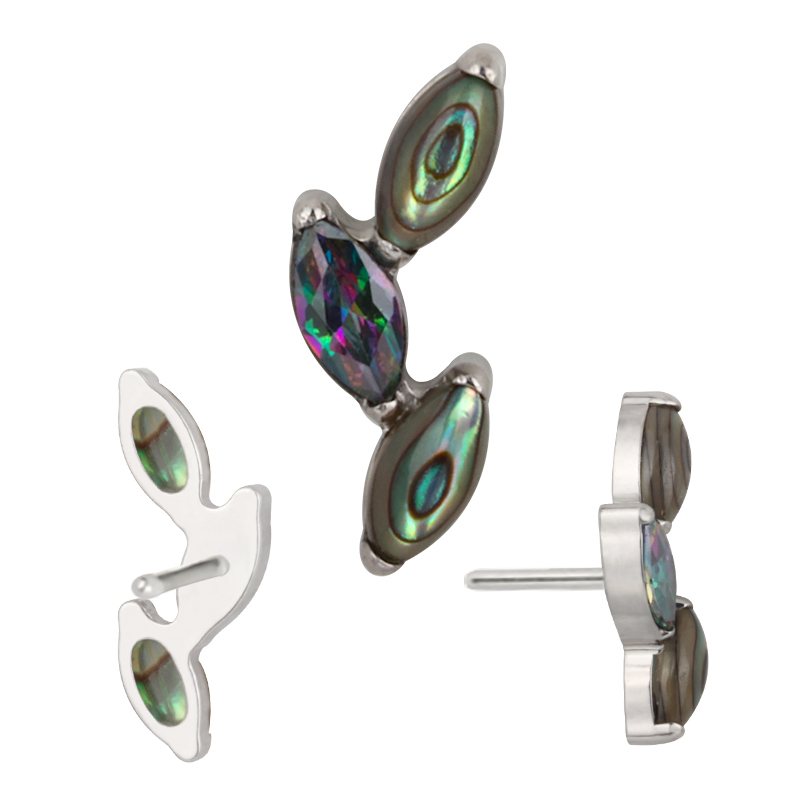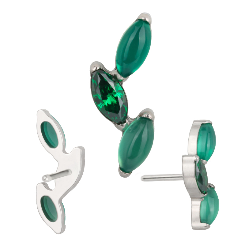 Titanium Push In 3 Marquise Natural Stone Leaf Shape Threadless Top