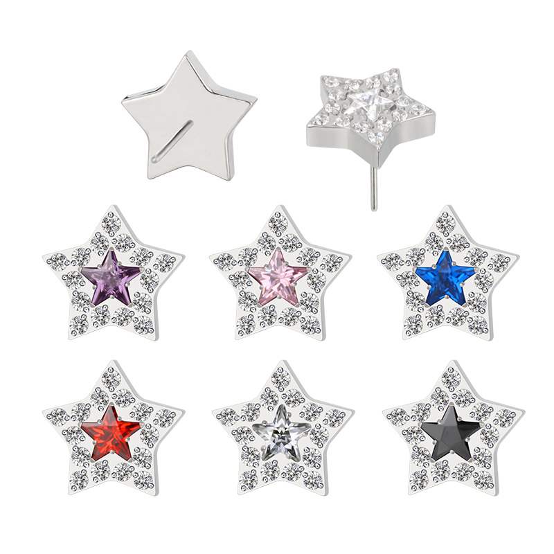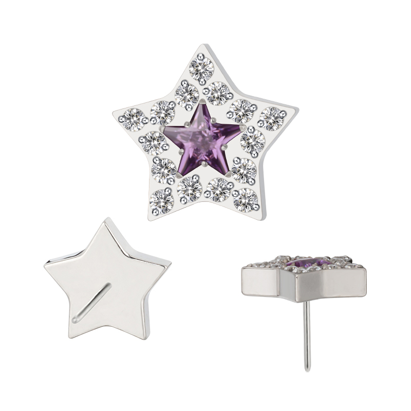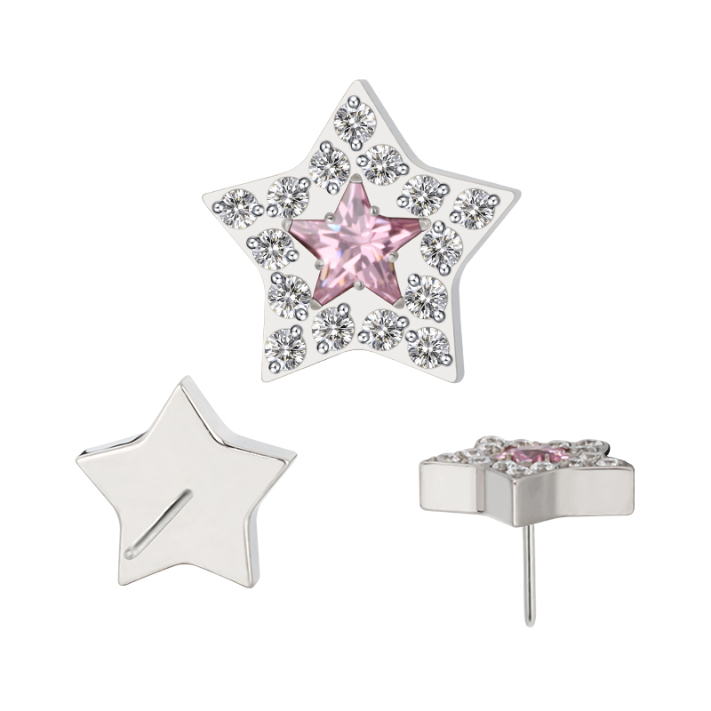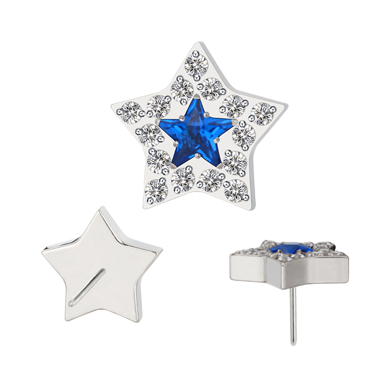 Titanium Push In CZ Paved Star With Star CZ Center Threadless Top