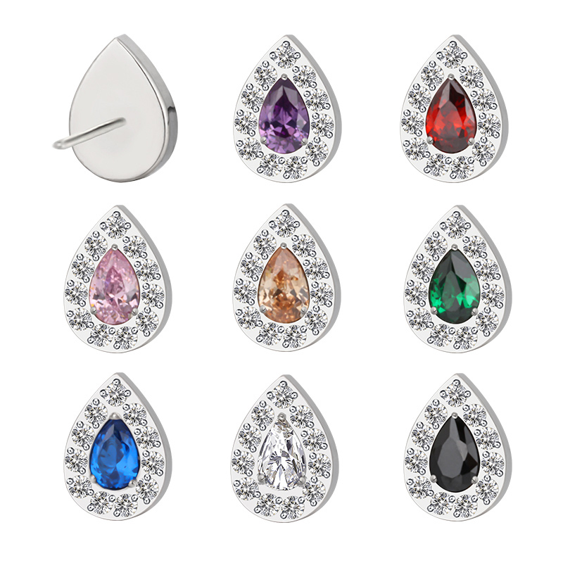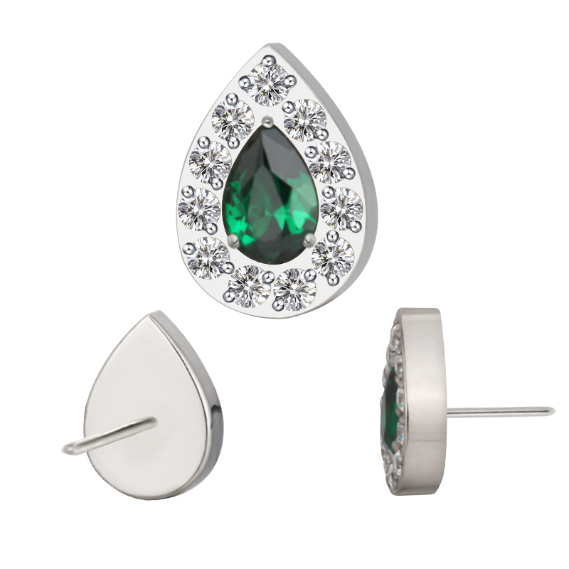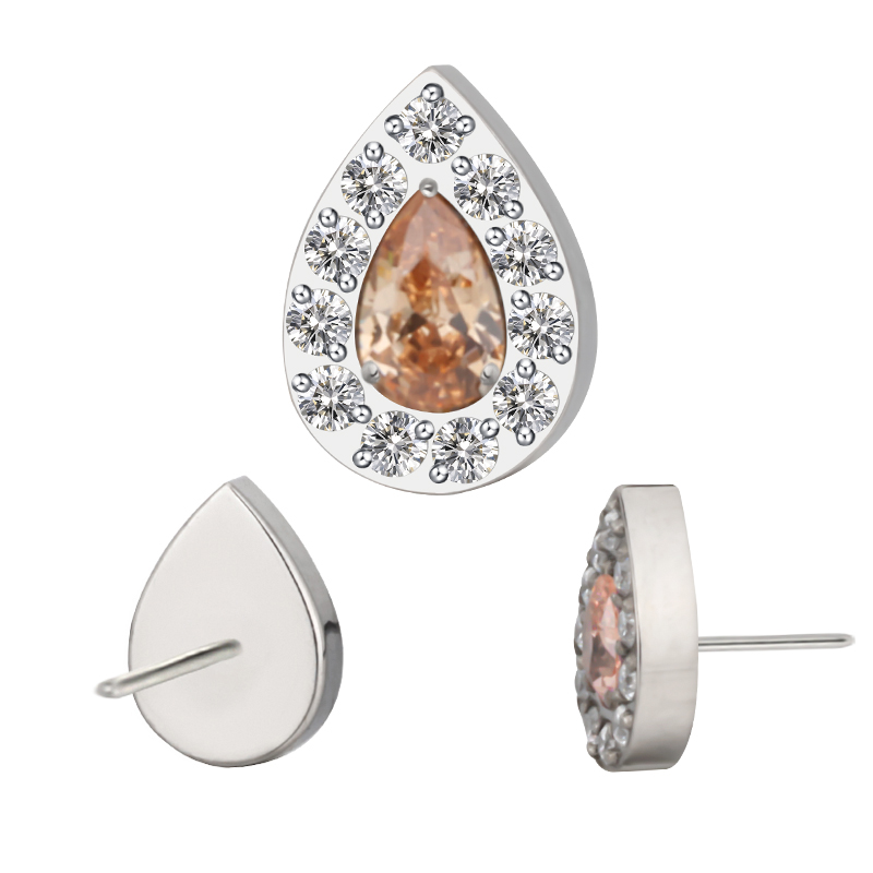 Titanium Push In CZ Paved Pear With Pear CZ Center Threadless Top