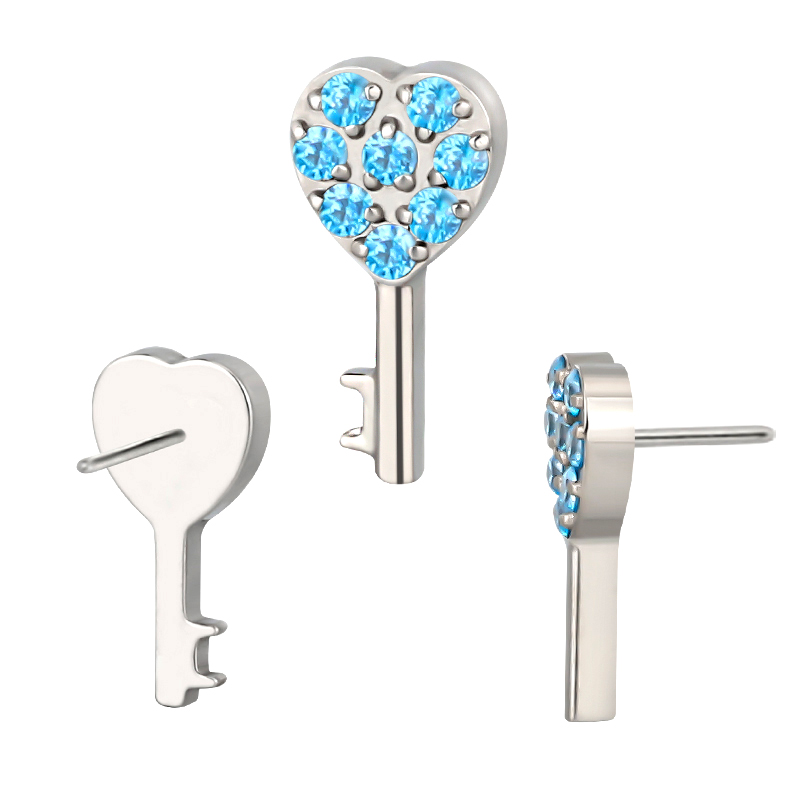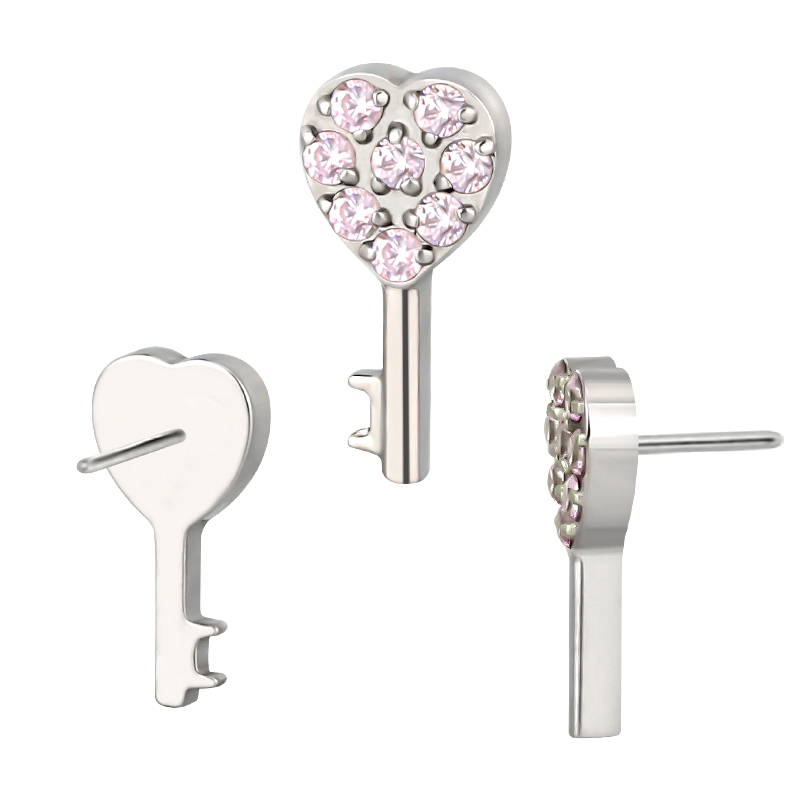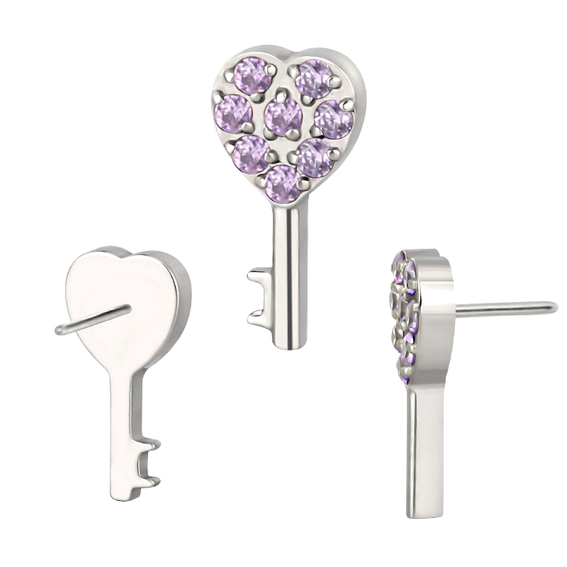 Titanium Push In CZ Paved CNC Heart Key Threadless Top