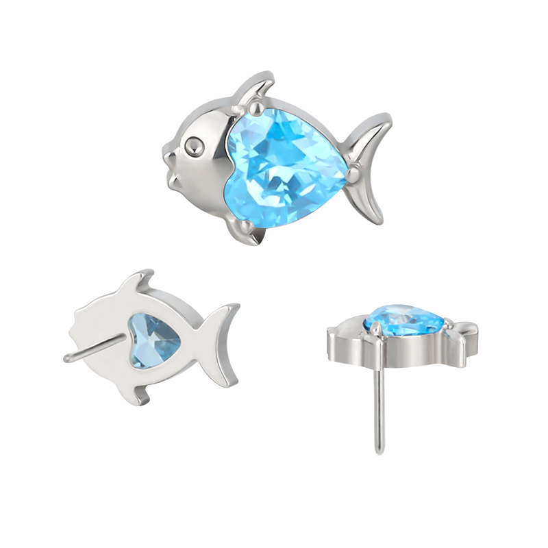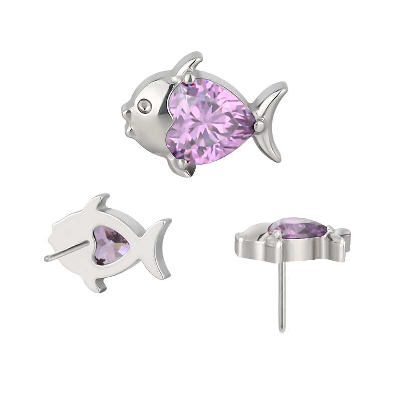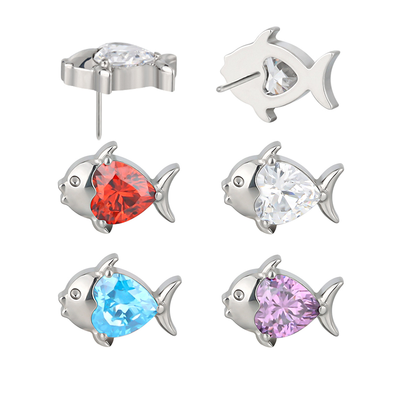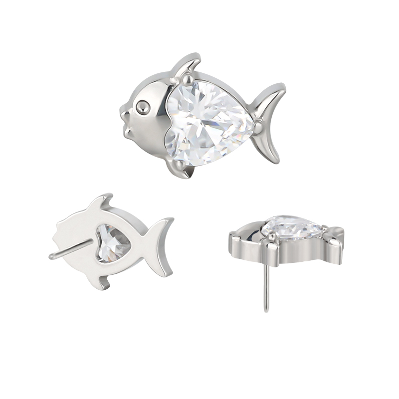 Titanium Push In CNC Set CZ Fish Threadless Top